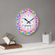 Este relógio colorido de berçário está pronto para o seu nome (opcional). Criado com uma face central branca e rosa com uma borda exterior colorido de folhas. Tão giro para o quarto de bebê ou de menina. Sua escolha de tamanho médio ou grande.
