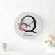 Relógio Grande Inicial Floral Rosa Boho Menina Monograma Q