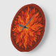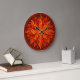 Mandala vibrante com chamas estilizadas em laranja intenso, vermelho carmim e amarelo dourado, formas orgânicas de folhas tropicais entrelaçadas, pontos de luz brilhante no centro, transições suaves entre tons quentes, bordas com padrões de fênix abstrata.
