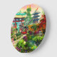 Jardim Japonês Pagoda Sakura E Imitação Da Pintagem De Óleo Em Caieira. Cherry Blossom, flores, lindos edifícios de estilo japonês, muito coloridos e amigáveis com feng shui
