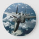 Excelente foto de um jato de caça no céu. Captura de excelentes com lindas nuvens e ilhas visíveis no chão.