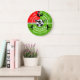 Relógio De Futebol Correspondente. Este relógio de futebol novidade é excelente divertido para qualquer um que ama futebol! O design é baseado em uma partida de futebol com campo de futebol, com círculo central e no meio, uma bola de futebol pronta para arrancar. O tempo de partida começa no início e a primeira metade do jogo fica pronta até 45 minutos. Depois há o tempo médio mostrado em vermelho. A segunda metade começa de novo à partida e termina aos 90 minutos quando há o último assobio. O slogan do futebol diz: O Belo Jogo. Dois jogadores de futebol prontos para disparar no alvo também são mostrados na silhueta. Este relógio de futebol divertido vai parecer excelente em qualquer sala e faz um presente divertido para jogadores de futebol e fãs de futebol.
