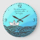 O relógio de parede com um barco de papel desenhado a lápis, e frase motivacional - "Não é uma aventura se você sabe para onde vai..." em fundo aquamarino. As palavras podem ser personalizadas. Esta trabalho de arte única desenhada por mão faria um presente de excelente para seu amigo ou alguém especial em sua vida. Você tem desejos pessoais específicos de design? Sinta-se livre para entrar em contato comigo blackflyoleg@gmail.com