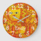 Relógio de ilustração de leão de aquarela padronizada. Um relógio divertido e colorido que seria perfeito para qualquer cômodo da sua casa, incluindo salas de brincar de crianças e berçários de pequenos. Design por Julie Nicholls©