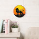 Silhueta de leão selvagem, pontos de aparência metálicos dourados, caligrafia e nascer do sol num relógio de parede da selva. O leão é um poderoso símbolo de coragem! Prossiga seus sonhos!