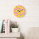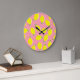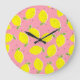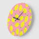 Relógio Grande Lêmons caóticos cor-de-rosa Polka: Padrão Citrus