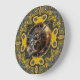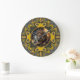 Relógio Grande Leo Zodiac Dourado Yellow Fractal Mandala Artístic