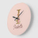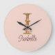 Relógio Grande Letra Personalizada I Dourada Rosas Rosa Claro