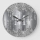 Traga uma elegância moderna e sofisticada para qualquer cômodo com este relógio de parede personalizado com gotas de brilho prateado. Com um design elegante de cascata de brilho falso com seu monograma e nome personalizados, este relógio adiciona um toque refinado de brilho à decoração da sua parede.