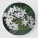 Este relógio incrível mostra uma fotografia detalhada de um monte de lindas flores brancas tropicais brilhantes. Estas flores bonito encontram-se em países tropicais. A foto foi tirada usando macro fotografia para um resultado detalhado.