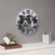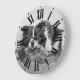 Este Relógio Grande do Lindo Cão Border Collie apresenta uma fantástica foto em preto e branco de um lindo cão border collie deitado em um tronco de árvore. Uma adição perfeita para a casa de qualquer amante de cães por aí. Imagem exclusiva da Zazzle e não pode ser encontrada em nenhum outro lugar!. © Dafydd's Designs.