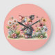 Relógio Grande Lindo Porquinho de Patchwork no Jardim Floral