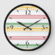 Relógio Grande Listras verdes, brancas, amarelas
