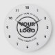 Substitua o logotipo e o texto da amostra da empresa por você na barra lateral para criar um na moda mínimo de relógio para sua empresa com um plano de fundo de cinza neutro. Seu logotipo pode ser em cores ou preto e branco. Se quiser que a cor de fundo mostre através do seu logotipo, carregue uma versão do seu logotipo com um fundo transparente. Números negros negros negros à volta da borda facilitam a contagem do tempo. Seu texto se curva em volta da parte superior e inferior do seu logotipo. Clique para personalizar ainda mais se precisar ajustar o tamanho do logotipo com os botões de escala ou para alterar a cor do texto. Veja mais itens aos quais você pode adicionar seu logotipo na coleção Rocklawn Arts.