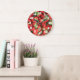 Um relógio com uma fotografia colorida que apresenta um monte de morangos vermelhos lúcidos.