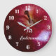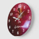 Relógio Grande de Maçã Realista Personalizado apresenta o design com a aparência de uma grande maçã. Os números estão em letras brancas decorativas, e o nome da sua família ou outra mensagem aparece em letra cursiva branca. Uma ótima peça de conversação para sua cozinha - também é um ótimo presente para uma noiva ou proprietária de casa. Uma cozinha com tema de maçã é uma ideia tão fofa! Combina bem com as maçanetas/puxadores de gaveta realistas em forma de maçã.