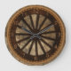 Um pulso de disparo à moda com o olhar de uma roda de vagão de madeira no fundo de madeira afligido. O pulso de disparo é acrílico com o olhar da madeira, mas não é feito da madeira.