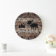 Este design personalizado rústico, único, de um tipo apresenta um fundo de madeira falsa angustiado com pinheiros, um alce, e as palavras, "OS WILLIAMSONS VIVENDO NA MONTANHA TIME EST. 20XX" em tipografia negra. Personalize este relógio adicionando suas próprias informações pessoais. Que presente de excelente. Clique em "personalizar este modelo" para alterar os nomes e as fontes para criar um design único de um tipo. Que cúmplice agradável para sua sala de estar, quarto ou sala de família. Se precisar de ajuda para personalizar, envie-me um e-mail para o site @gmail.com. Obrigados para parar em www.zazzle.com/WhisperingPines. #zazzlemade ©Karen Hall