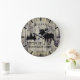 Um design personalizado rústico, único, de um tipo apresenta um fundo de madeira falsa com pinheiros, um alce e as palavras, "OS WILLIAMSONS VIVENDO NA MONTANHA TIME EST. 20XX" em tipografia negra. Personalize este relógio adicionando suas próprias informações pessoais. Faz um excelente de casamento, aniversário ou presente de inauguração. Clique em "personalizar este modelo" para alterar os nomes e as fontes para criar um design único de um tipo. Que cúmplice agradável para sua sala de estar, quarto ou sala de família. Se precisar de ajuda para personalizar, envie-me um e-mail para o site @gmail.com. Obrigados para parar em www.zazzle.com/WhisperingPines. ©Karen HallA rusticidade