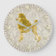 Relógio Grande Mão Minuta de Hora Amarelo de Diamante Dourada