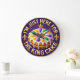 Celebrate the spirit of carnival season with this vibrant Mardi Gras wall clock! The design features a delicious 3D-style King Cake dripping with white icing and traditional purple, green, and gold sugar sprinkles. Centered on a royal purple background, bold golden text proudly proclaims, "I AM JUST HERE FOR THE KING CAKE." Elegant fleur-de-lis symbols and a golden crown accent the face, adding a touch of New Orleans flair to your decor. This functional timepiece is a cheerful addition to kitchens, dining rooms, or party spaces during the Fat Tuesday festivities. Available in 12 stunning frame colors to suit your home aesthetic, this clock is built to last and comes with a guarantee for life. You can even customize the text to feature your own name or a unique celebration message! It is the perfect chic self-gift for anyone who loves the flavor and fun of the bayou.