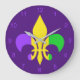Relógio Grande Mardi Gras Verde Amarelo Púrpura Fleur-de-Lis