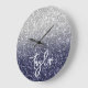 Crie seu próprio relógio de parede para ela apresentar uma cinza de prata suja e um gradiente de brilho azul marinho. Adicione um monograma atrás do nome dado para criar seu próprio design monograma personalizado. O texto personalizado apresenta um moderno script de caligrafia do estilo do pincel de letras escritas à mão. Personalize o estilo de texto e fonte neste design. A alegre arte digital será impressão como uma foto em seu presente.