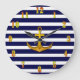 Anchor e faixas de marinho fazem a moda do seu relógio de parede em estilo nautico.