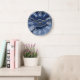 Relógio Grande Mármore Ágata Brilho Azul e Prata Falsa