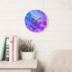 Relógio Grande Mármore Roxo com Números Brancos