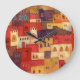 Pintura aquosa da aldeia de Ait Benhaddou, no Marrocos. Cores de terra quente e característica distintiva da arquitetura. Arte original de Nic Squirrell.