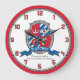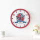 Estilo do Cavaleiro escudo monograma letra F nome da arte: relógio de parede numerado simples em tons de vermelho, azul branco e cinza. Personalize com seu próprio nome e nome, significando um toque personalizado no quarto ou quarto do seu filho, este exemplo é para nomes que começam com a letra F. Atualmente lê Fletcher O fabricante de seta. Dinâmico, aventureiro e energético. Ideal para um presente para um bebê novo, para um batizado, batizado ou presente de chá de fraldas. Desenho de escudo único, arte gráfica, investigação de nomes, redação e design por Sarah Trett. www.sarahtrett.com para www.mylittleeden.com