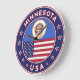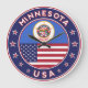 Crachá de Minnesota com bandeira de Minnesota e bandeira dos EUA cores, forma arredondada. Emblema de Minnesota. Selo de Minnesota. Coleção dos Estados Unidos.