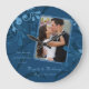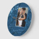 Mude a foto e o texto para personalizar este abstrato azul modelo de casamento, noivado ou relógio de aniversários. Um design floral elegante.