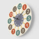 Este design de relógio divertido é inspirado pelos relógios atômicos dos anos 50. Os números de bege estão em círculos de vários tons antigos de laranja, marrom e azul lacrimogêneo. Eles aranha para fora de um centro redondo em uma matiz de cinza que conta os segundos/minutos. É uma design simples, ousada do século médio com um sentimento masculino. Tudo repousa sobre um fundo bege antigo, mas você pode personalizar essa sombra para qualquer um de que você goste para que o relógio corresponda melhor à sua decoração doméstica.