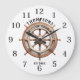 Design Monograma de Roda Marinha Náutica com Barramento Marítimo Grande Relógio Nome ou monograma Personalizado de Família ou Relógio Grande com Relógio Marítimo Nacional Monograma de Roda Marinha Grande Relógio em design de estilo náutico com face numérica árabe num design de fundo de roda de barco. Presente perfeito para recém-casados, presente de casamento ou de inauguração de casa ou presente de avós, ou para uma remodelação em casa na caverna do homem, na cabana da praia, na cabana ou na casa do lago do campo.