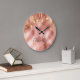 Um elegante, giro, glamouroso relógio de parede. Um fundo de rosa dourado de tendência falsa metálico. Decorado com estrelas ouros. Personalize e adicione seu nome e monograma, iniciais. Números de ouro.