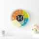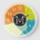 Relógio Grande Monograma Moderno de Mosaico Laranja Limão Azul