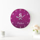 Relógio Grande Monogramas com Brilho Roxo Rosa Presente Favor Mod