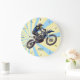 Motocross temed wall clock com texto personalizável.