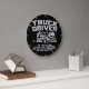 Este poderoso relógio de parede homenageia a dedicação inabalável dos motoristas de caminhões. Num fundo preto com borda verde-oliva, apresenta um crânio e um semircaminhão, ao lado do texto: "TRUCK DRIVER WE THE WILLING LED BY THE UNKNOTING RAE DOING THE IMPOSSÍVEL FOR THE GRATEFUL". É um reconhecimento adequado de seus esforços incansáveis apesar de muitas vezes serem subapreciados. A ferramenta design também pode ser usada para adicionar texto personalizado se você quiser seu nome ou empresa neste relógio. Você pode personalizar a cor do quadro para qualquer cor que desejar, entrando na ferramenta design.