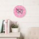 Rustic farmhouse kitchen clock with a pink gingham print and My kitchen My rules typography. Personalize with name.