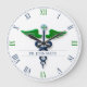 Relógio Grande Na moda Caduceus Green Wings Cross Blue Medicina