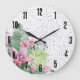 Um design tropical que abraça a beleza tranquila da natureza misturada com uma aresta lúdica. Uma mistura de folhas tropicais verdes calmantes, incluindo folhas de bananeira, palmas, folhas de monstera e plantas de princesa rosa, ao lado de flores de orquídeas roxas cor-de-roxo e flores de proteína, interligadas com várias outras folhagens. Adicionando um elemento de diversão, um 'ponto bagunçado' ou 'ponto dalmático' de cinza infunde o design com um toque lúdico. Essa design versátil traz um senso de paraíso tropical para qualquer cenário ou ocasião especial. Veja todas as peças de coordenação também! Ponto de Trendência Bonito Relaxe Aquarela Floral Grande Relógio Tropical
