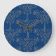Um Relógio de Parede na moda, com um padrão floral de efeito ouro sobre fundo azul profundo, de um design digital de Judy Adamson.
