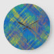 Na moda xadrez em apuros estampados com padrão arredondado ou quadrado. Linda combinação de cores de azul, verde e amarelo. Relógio montado na parede divertida.Palete de cores complementares Bonito. Mais cores disponíveis em Heva Weva.