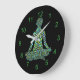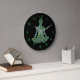 Yoga fêmea prenda silhueta colorida relógio de parede personalizado com números verdes. Ela parece brilhar no escuro com esta arte circular em aqua, turquesa, blues, verdes, mauves e rosa empoeirado sobre fundo preto. Você pode personalizá-lo adicionando ou alterando imagens, texto, fundo e estilo do relógio. Veja como coordenar produtos personalizáveis de decoração doméstica.