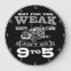 Este relógio ousado destaca a natureza exigente da profissão de caminhoneiro. Em fundo preto com borda branca, apresenta um semircaminhão de cinza e a mensagem forte: "NÃO PELA RAZÃO FRACA ISTO NÃO É 9 A 5". É um tributo perfeito à dedicação e resiliência dos motoristas de caminhão que trabalham além do horário convencional. A ferramenta design também pode ser usada para adicionar texto personalizado se você quiser seu nome ou empresa neste relógio. Você pode personalizar a cor do quadro para qualquer cor que desejar, entrando na ferramenta design.