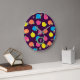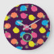 Stylized roses in bright neon pink, blue, yellow, and coral with neon green leaves are spangled across a deep purple background to create a fun floral pattern. Customize the monogram on this clock to make it uniquely your own.