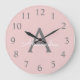 Relógio de Nome do Monograma de Script Simples de Cor Rosa e Cinza. Isso faz o doce presente de 16 anos, casamento, chá de panela, aniversário, chá de fraldas ou festa de solteira perfeito para alguém que ama luxo de óculos e estilos quicos.